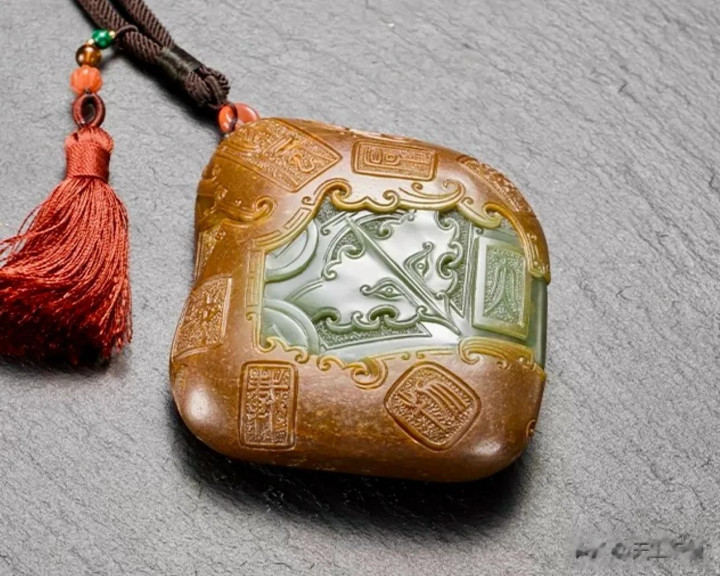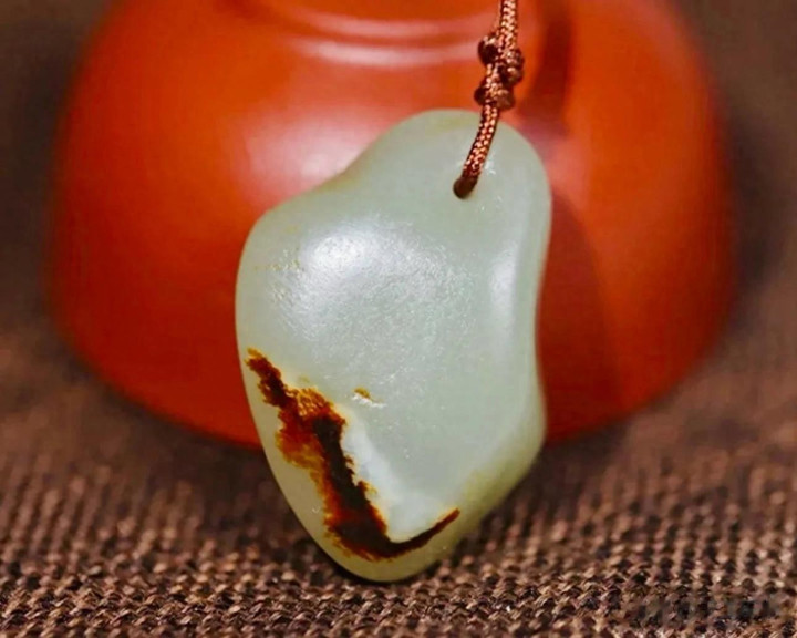 和田玉里油性最好的就是籽料,而青玉因为阳起石含量较高,油性表现更是出类拔萃,当二者组合起来就是最油润的极品玉种。