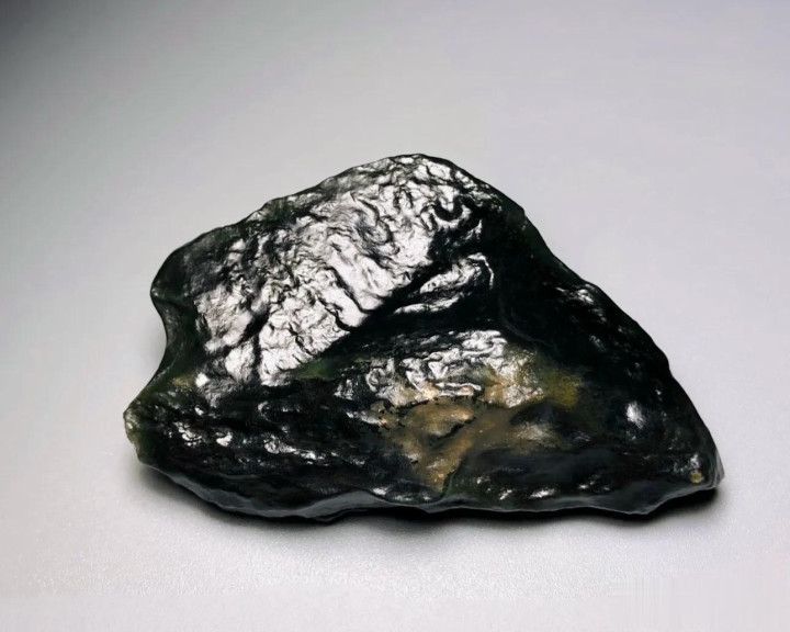黑青戈壁料最常见的就是策勒料,自然光下黑的发亮,打灯却是漂亮的青绿色。戈壁黑青最适合作为标本进行收藏,保留天然原石的本色就是最好的赏玩方式。